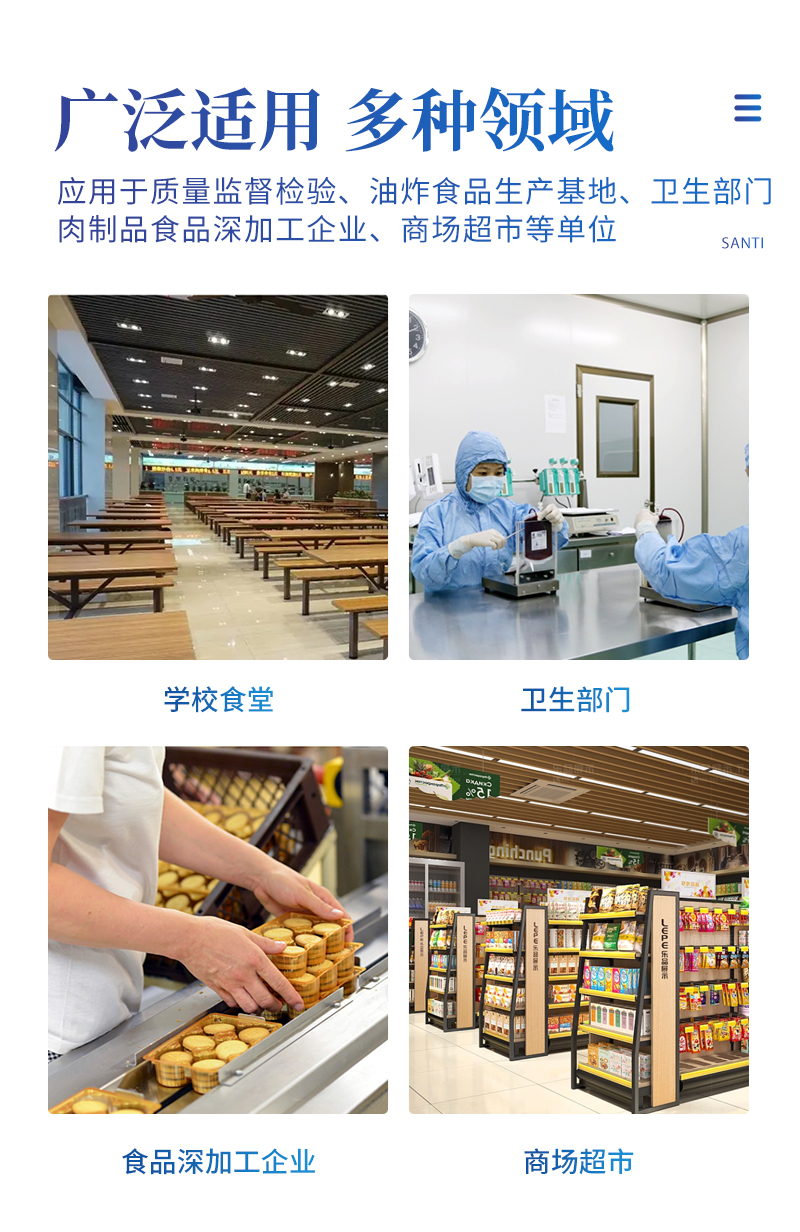 該過丙二醛檢測儀為集成化食品安全快速檢測分析設備,目前已于市場監(jiān)管局、食品深加工企業(yè)、學校食堂、煉油廠、配送中心、商場超市等單位廣泛使用
